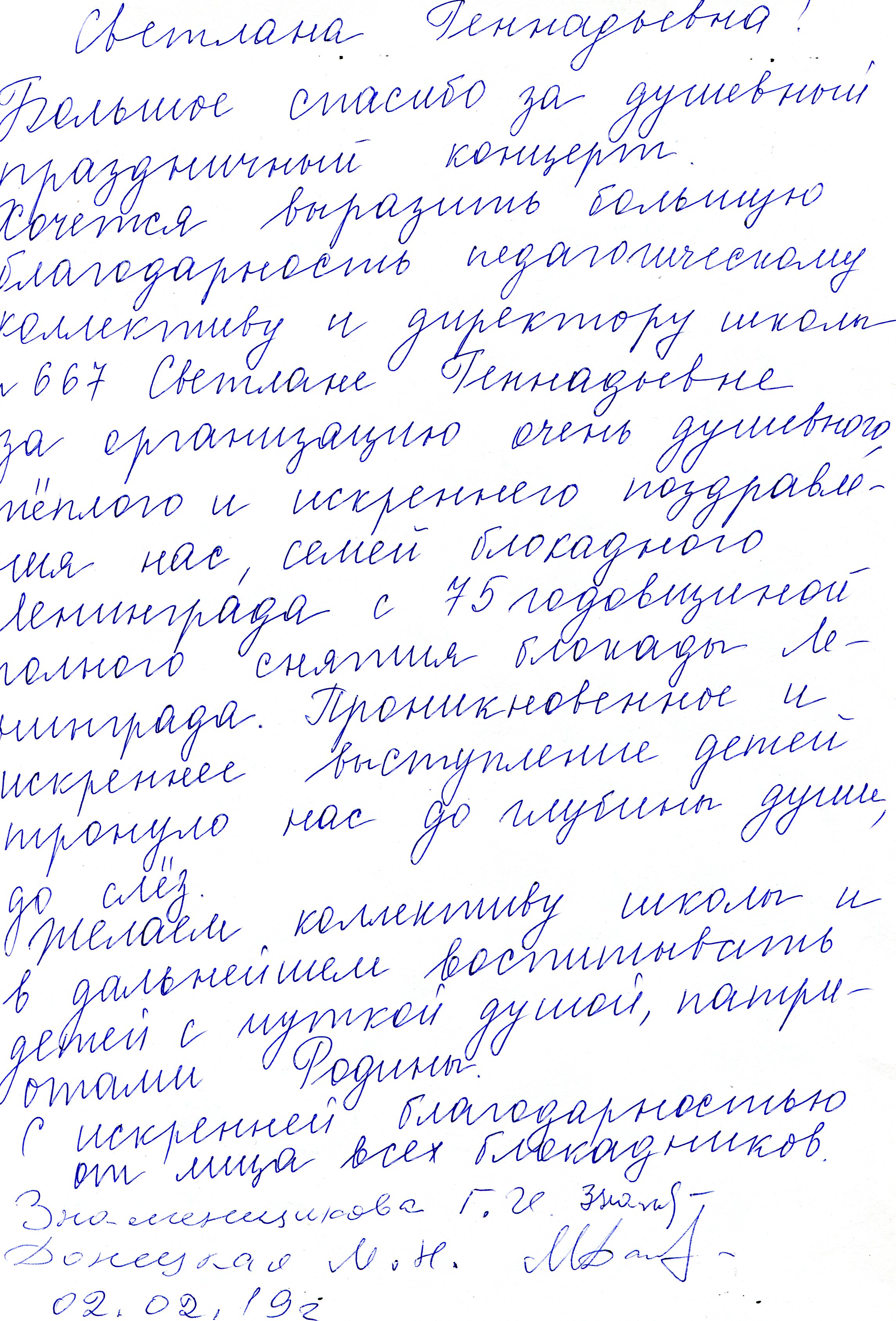 2 февраля в школе состоялось торжественное вручение памятных знаков "В честь 75-летия полного освобождения Ленинграда от фашистской блокады", на котором присутствовали Первый заместитель главы администрации Сергей Иванович Оверчук, начальник организационного отдела Полина Андреевна Бабаева, депутат МО "Правобережный" Александр Васильевич Березин. От администрации прозвучали теплые слова поздравления для жителей блокадного города, а ребята подготовили концертную программу.